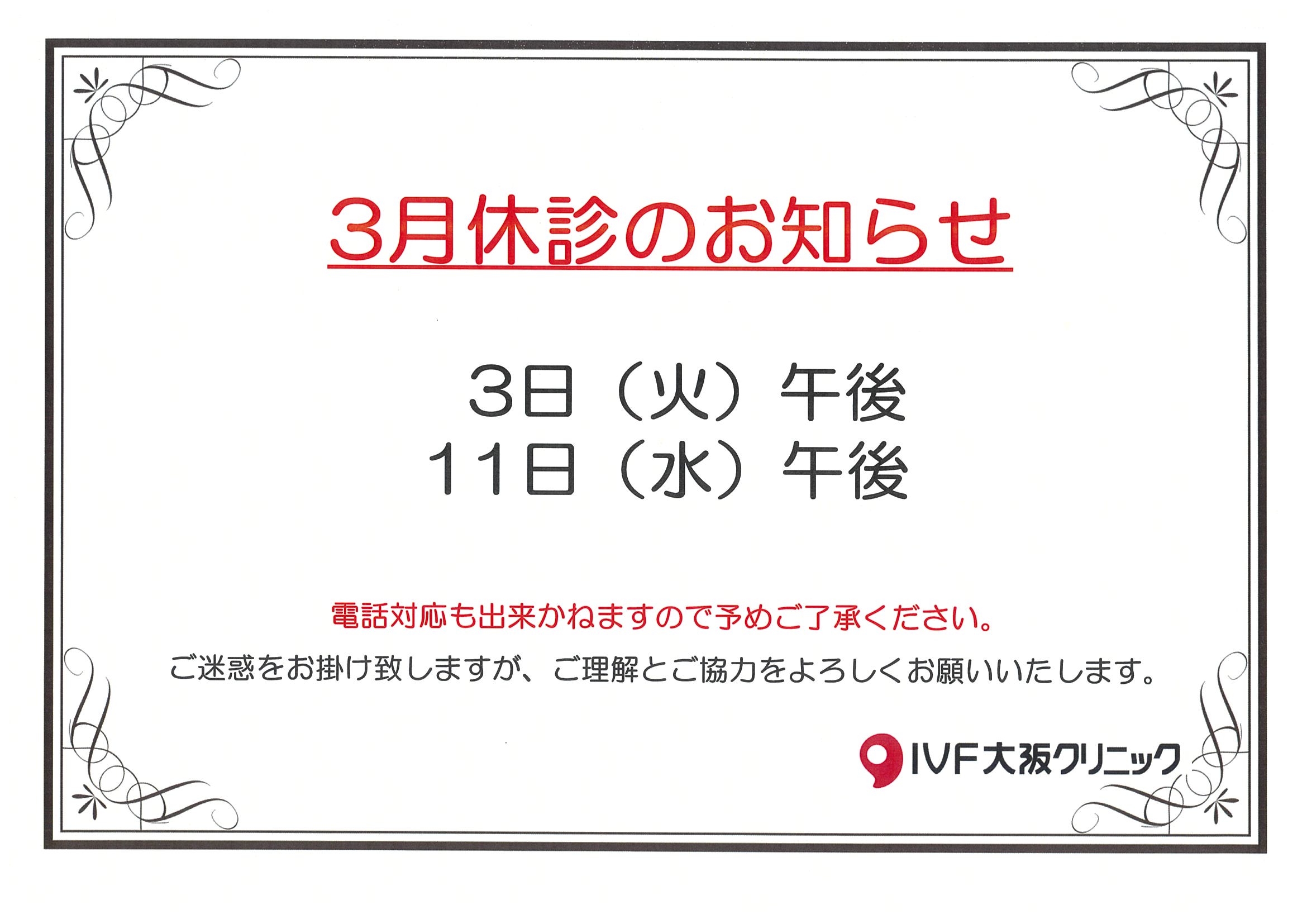 3月休診のお知らせ